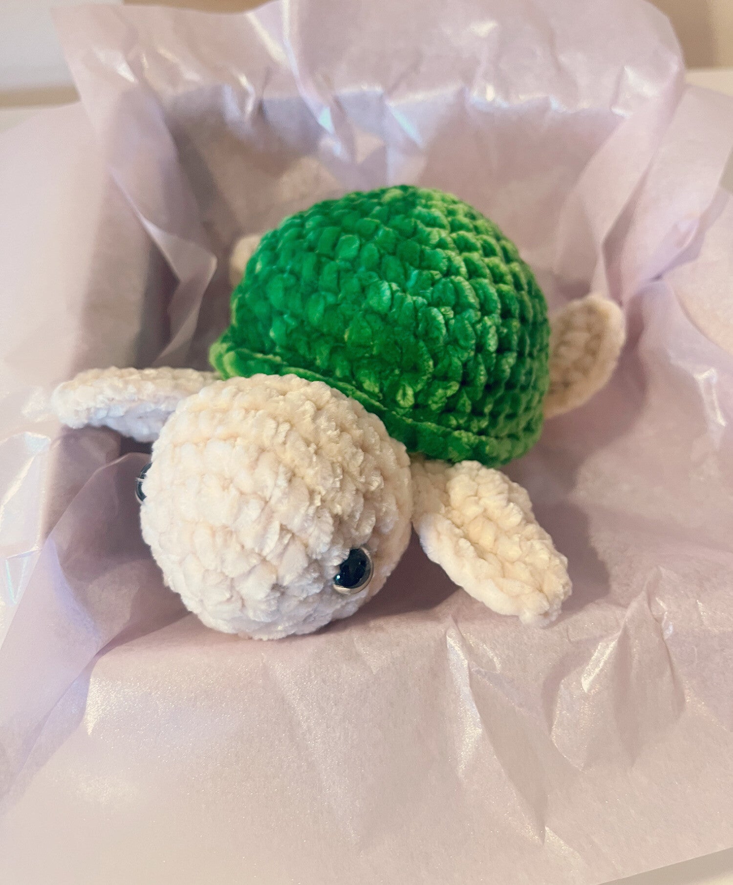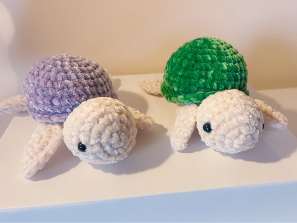 Adorable tortuga de 15cm tejida a crochet con hilo de chenille y relleno de sintético. Súper suave y jugosa ideal para los más peques. Se puede personalizar en cualquier color.